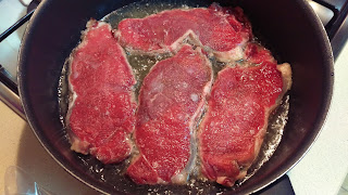 Volte a colocar os bifes na frigideira e vá calcando para largar um pouco dos sucos.