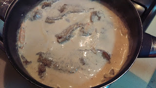 Deite fora a banha e deite a manteiga e os camarões na frigideira. Deixe fritar um pouco e depois junta-lhe a mistura das natas.