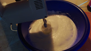 Quando estiver uma espécie de merengue, adicionar o extracto de baunilha, misturar mais um pouco.