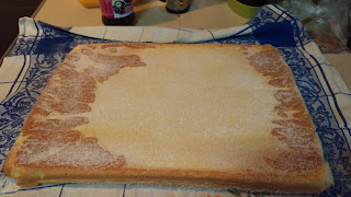Vá enrolando bem o bolo ainda quente (do lado mais curto, para enrolar mais vezes) junto com a toalha com cuidado.